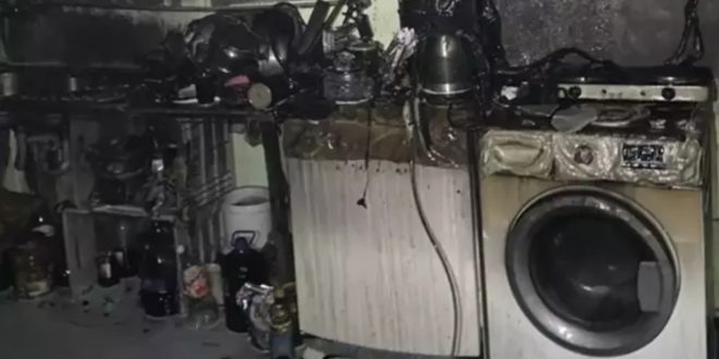 Hasar oluşan lojmanda soğutma çalışması yapıldı.