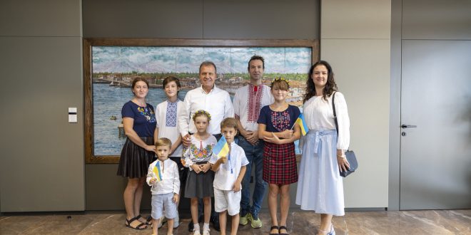 Mersin Ukrayna Yardımlaşma ve Dayanışma Derneği Başkan Yardımcısı Ludmila Ardıç, dernek üyeleri ve çocukları, Mersin Büyükşehir Belediye Başkanı Vahap Seçer’i ziyaret etti.