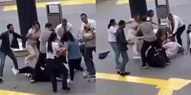 Mersin’de Forum Alışveriş Merkezi önünde, iki kadın grubu arasında çıkan tartışma kavgaya dönüştü. Kavga sırasında kadınlardan biri yere düşerken, güvenlik güçleri olaya müdahale etti.