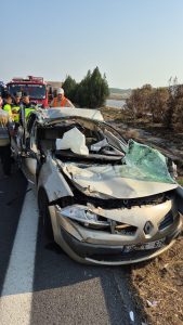 Çarpmanın etkisiyle otomobil hurdaya dönerken, sürücü A.M. ve yanında bulunan eşi A.M. araç içerisinde sıkıştı. Kazayı gören vatandaşların 112 Acil Çağrı Merkezi’ne yaptığı ihbar üzerine olay yerine sağlık, polis ve itfaiye ekipleri sevk edildi.