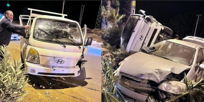 Kaza, gece Mersin-Antalya D-400 kara yolunda Erdemli ilçesi Alata Mahallesi sınırlarında meydana geldi. Alınan bilgiye göre, A.O.C. idaresindeki 33 ADU 026 otomobil ile K.K. yönetimindeki 33 ZH 693 plakalı kamyonet çarpıştı. Kazada 4 kişi yaralanırken, diğer sürücüler durumu 112 Acil Komuta Merkezi’ne bildirdi. Merkez de bölgeye sağlık ve polis ekibini sevk etti. Yaralılar olay yerine sevk edilen ambulanslarla ilçe devlet hastanesine kaldırıldı. Yaralıların durumunun iyi olduğu öğrenildi. Kamyonetin yan döndüğü kazayla ilgili soruşturma sürüyor.