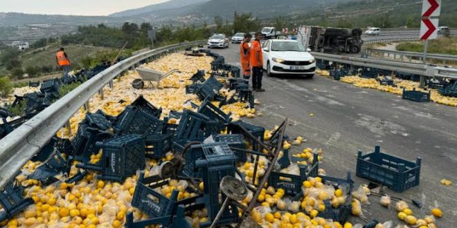 Mersin’in merkez Toroslar ilçesinde limon yüklü kamyonun devrilmesi sonucu 6 kişi yaralandı.