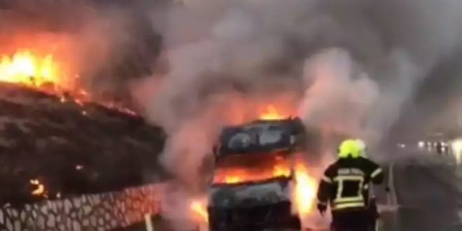 Olay, akşam saatlerde Tarsus’un Damlama mevkisinde meydana geldi. Mersin- Adana otoyolunda seyir halinde olan yabancı uyruklu Y.E.S. yönetimindeki 63 MA 2131 plakalı minibüsün motor bölümünden dumanlar yükselmeye başladı. Durumu fark eden sürücü aracı güvenlik şeridinde durdurdu. İhbar üzerine olay yerine gelen Mersin Büyükşehir Belediyesi İtfaiye Müdürlüğü ekipleri müdahale ederek yangını söndürdü. Araçtan yükselen alevler yol dışındaki çalılık alana da sıçradı. Ekipler, ot yangınını da büyümeden söndürdü. Minibüsün demir yığını haline dönüştüğü yangında yaralanan olmadı. Cep telefonu kamerası ile kaydedilen yangınla ilgili inceleme başlatıldı.