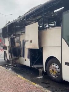 Alevlerin yükseldiğini fark eden şoför, büyük bir soğukkanlılıkla aracı durdurarak yolcuları hızlıca tahliye etti. Otobüs kısa sürede alev topuna dönerken, sürücü durumu 112 Acil Çağrı Merkezi’ne bildirerek yardım istedi.