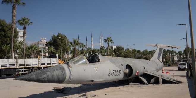Kültür Park sahilinde yıllardır sergilenen ve Mersinlilerin hafızasında bir simge olarak yer edinen F-104 tipi savaş uçağı, korozyona uğraması ve güvenlik riski oluşturması sebebiyle kaldırıldı.