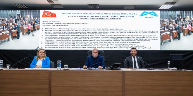 Mersin Büyükşehir Belediyesi Mersin Su ve Kanalizasyon İdaresi(MESKİ) Genel Müdürlüğü’nün 2023 Yılı Kasım Ayı Olağan Genel Kurul Toplantısı’nın 1. Birleşimi gerçekleştirildi. Mersin Büyükşehir Belediye Kasım Ayı Olağan Meclis Toplantısı’nın ardından başlayan toplantıda toplam 8 madde görüşüldü.