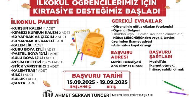 Anasayfa / Güncel / MEZİTLİ BELEDİYESİ’NDEN ÖĞRENCİLERE KIRTASİYE DESTEĞİ BAŞVURULARI BAŞLADI