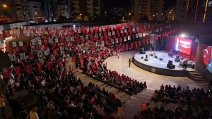 Programın finali, Amfi Tiyatro’da gerçekleştirilen etkinliklerle taçlandı. Cumhuriyet Korosu’nun seslendirdiği marşlar, Zeybek dans gösterisi ve yerel sanatçı Bayram Kaplan’ın konseri izleyenlere unutulmaz anlar yaşattı. Amfi Tiyatro’daki etkinliklere; Cumhuriyet Halk Partisi Mezitli İlçe Başkanı Tolga Gökçeli, CHP Gençlik Kolları MYK Üyesi Çağla Devrim Palamut, Gençlik Kolları Başkanı Onur Şahin, Mezitli Kent Konseyi Başkanı Bilal Kurtbeyoğlu ve çeşitli sivil toplum kuruluşlarının temsilcileri, oda başkanları, mahalle muhtarları, çok sayıda basın mensubu ve vatandaş katılım sağladı.