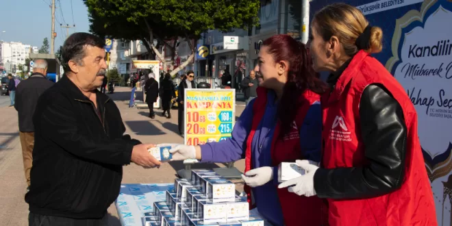 Kandillerde vatandaşlara kandil simidi ikramını geleneksel hale getiren Mersin Büyükşehir Belediyesi Sosyal Hizmetler Dairesi, dün gece kutlanan Miraç Kandili’nde de vatandaşlara kandil simidi dağıttı.