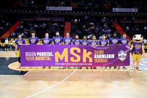 Maç öncesi MSK oyuncuları ‘Bugün Parkede Yarın Hayatta: MSK Daima Kadınların Yanında!’ yazılı pankartla çıkarken, kadın farkındalığına vurgu yapmak için MSK oyuncuları ve takım maskotu Caretta ‘Daima Kadınların Yanındayız’ baskılı mor t–shirtlerle sahaya çıktı. Etkinlikte, Meral Seçer’e oyuncular tarafından kadın gücünü ve toplumsal eşitlik mücadelesini simgeleyen mor top hediye edilirken, kadın dernek başkanlarına çiçek takdim edildi. Maç boyunca led ekranlardan farkındalık mesajları yayınlandı.
