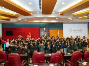 Tarsus’ta Musa Bengi İlkokulu 2. sınıf öğrencileri, yerel yönetimlerin işleyişini yerinde öğrenmek amacıyla Tarsus Belediyesi’ni ziyaret etti. Belediye meclis salonunda gerçekleşen buluşmada öğrenciler hem belediyenin görevlerini öğrendi hem de merak ettikleri soruları yöneltti.