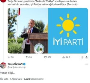 Özel ile Özcan arasında yeni ‘süreç‘ tartışması sürerken, Özcan’ın partisi CHP’den istifa edip İYİ Parti’ye katılacağı iddiaları sosyal medyada dolaşıma sokuldu. Özcan ise bu iddianın paylaşıldığı bir haber sayfasının altına “Yanlış bilgi” açıklamasını yaptı.