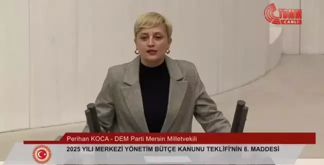 TBMM Genel Kurulu’nda 2025 Yılı Merkezi Yönetim Bütçe Kanunu Teklifi’nin bugün 5 ila 13. maddeleri üzerindeki görüşmeler devam ediyor. DEM Parti Mersin Milletvekili Perihan Koca, konuşmasında şu ifadelere yer verdi: