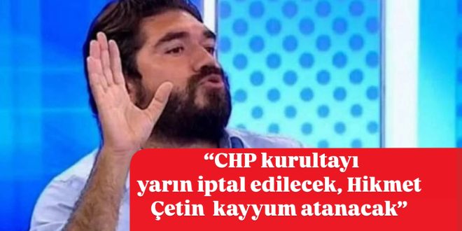 Hükümete yakınlığı ile bilinen Rasim Ozan Kütahyalı, CHP kurultayının iptal edileceğini ve Hikmet Çetin’in CHP’ye geçici kayyum olarak atanacağını iddia etti.
