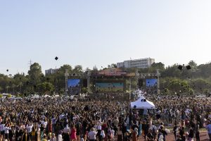 Mezuniyet töreni, öğrencilerin coşkulu bir şekilde kep atmasının ardından sona erdi.