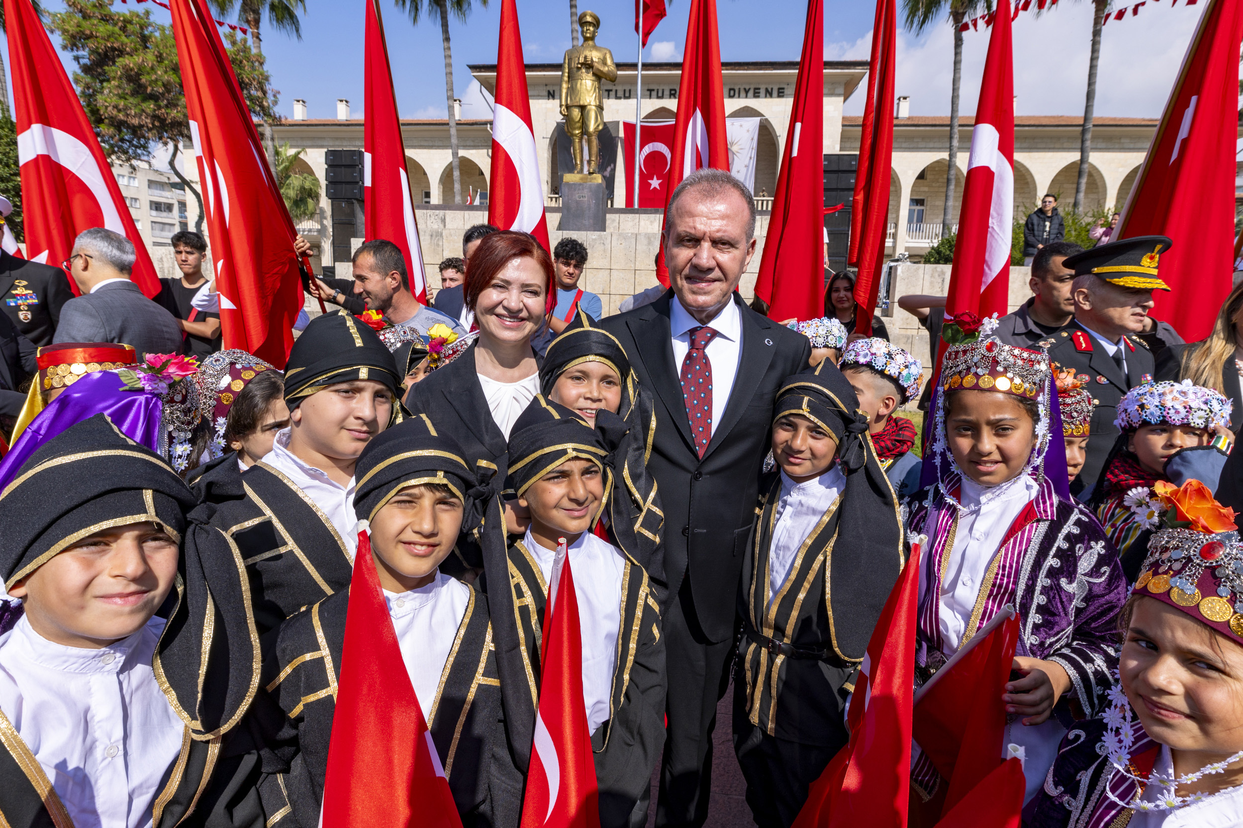 Törene; Başkan Vahap Seçer ve Meral Seçer’in yanı sıra;Mersin Valisi Atilla Toros ve eşi Dudu İrem Toros, Akdeniz Bölge ve Garnizon Komutanı Tuğamiral Soner Kazankaya, kent protokolü ile çok sayıda vatandaş ve çocuklar katıldı.Saygı duruşu ve İstiklal Marşı’nın okunmasıyla başlayan törende ilk olarak İl Milli Eğitim Müdürü Muhammed Özdemirci günün anlam ve önemine ilişkin bir konuşma gerçekleştirdi. İl genelinde düzenlenen resim, şiir ve kompozisyon yarışmalarında dereceye giren öğrencilere ödüllerinin verilmesiyle devam eden tören, öğrencilerin bayrak gösterisi ve şiirlerin okunmasıyla sona erdi. Törenin tamamlanmasının ardından çocuklarla bir araya gelen Başkan Seçer ile Meral Seçer, kent protokolü eşliğinde toplu fotoğraf çekimine katıldı.