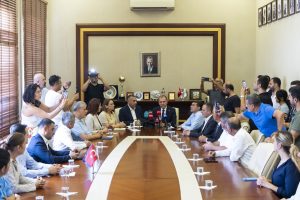 Türkiye Belediyeler Birliği (TBB) Başkan Vekili ve Mersin Büyükşehir Belediye Başkanı Vahap Seçer, geçtiğimiz günlerde tutuklanan ve görevden uzaklaştırılan Zeydan Karalar’ın yerine Başkan Vekili seçilen Güngör Geçer’i ziyaret etti. Seçer, ziyaretinin ardından tutukluluğu devam eden Zeydan Karalar için belediye binası önünde tutulan Adalet Nöbeti’nin sürdüğü alanda; Karalar ve diğer tutuklu tüm belediye başkanları için adalet bekleyen yurttaşların arasından iktidara seslendi. Ziyarette Seçer’in yanı sıra; Cumhuriyet Halk Partisi (CHP) Mersin İl Başkanı Koral Ömür, CHP Adana İl Başkanı Anıl Tanburoğlu, CHP Adana ve Mersin Milletvekilleri, Adana ilçe belediye başkanları ve ilçe belediye başkan vekilleri, CHP Adana ve Mersin Kadın Kolları Başkanları ile Gençlik Kolları Başkanları yer aldı.