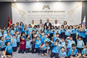 Tarsus Borsa İstanbul İlkokulu’nun 3/B ve 3/İ sınıfı öğrencileri, Mersin Büyükşehir Belediye Başkanı Vahap Seçer’i ziyaret etti. Büyükşehir Belediye binasında yer alan toplantı salonunda gerçekleşen ve öğrencilerin Hayat Bilgisi dersi ‘Yönetim Bilimleri’ konusunda aldıkları eğitimleri pekiştirmeleri amacıyla gerçekleşen buluşmada minikler, Başkan Seçer’e merak ettikleri soruları yönelttiler. Renkli anlara sahne olan ziyarette öğrenciler, Seçer’e birbirinden sevimli sorular yöneltti. Kimisi ‘Belediye başkanı olmanın zor yanları nelerdir?’diye sordu, kimisi çocuklara yönelik yapılacak farklı projeler olup olmadığını merak etti. Seçer ise çocukların ilgisinden büyük memnuniyet duyduğunu belirterek onların tüm sorularını içtenlikle yanıtladı.