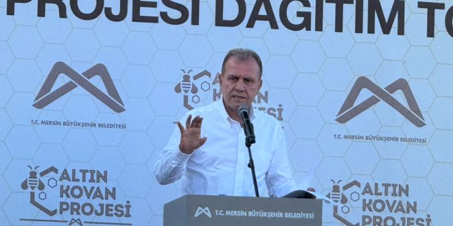 Mersin Büyükşehir Belediye Başkanı Vahap Seçer, Erdemli ilçesinde arıcılara yapılan kovan desteği dağıtım törenine katıldı.