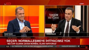 CHP’nin normalleşme sürecine ilişkin yaptığı açıklamaları soran Hacır’a yanıt veren Seçer, “CHP’nin aldığı tutumdan ziyade AK Parti’nin aldığı tutumu eleştiriyorum. Kendini normalleştirmesi gereken AK Parti’dir. Bugün baktığınız zaman onlar; mevcut uygulamaları sanki normalmiş gibi topluma sunmaya çalışıyor ya da normalleştirmeye çalışıyor. Benim karşı olduğum budur” sözlerine yer verdi.