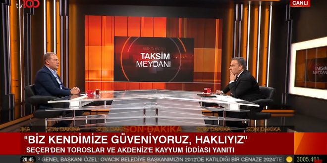 Mersin Büyükşehir Belediye Başkanı Vahap Seçer, TV100 Kanalında Gürkan Hacır’ın sunduğu ‘Taksim Meydanı’programının konuğu oldu. Seçer programda, normalleşme tartışmalarından kayyım atamalarına, Cumhurbaşkanlığı adaylığı söylemlerinden Mersin’de elde edilen başarı ve devam eden projelere kadar birçok konuda önemli açıklamalarda bulundu.