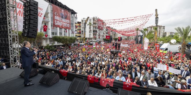 Cumhuriyet Halk Partisi’nin ‘Millet İradesine Sahip Çıkıyor Mitingi’, bu kez Mersin’de gerçekleşti. Partisinin Cumhurbaşkanı Adayı Ekrem İmamoğlu’na özgürlük ve erken seçim için mitinglerini sürdüren CHP, Mersin’de tarihi bir mitinge imza attı. Gencinden yaşlısına, 7’den 70’e alanı hınca hınç dolduran yurttaşlar; ‘Hak, Hukuk, Adalet!’ ve ‘Kurtuluş Yok Tek Başına, Ya Hep Beraber Ya Hiç Birimiz!’ sloganları ile siyasi baskılara tepki gösterdi. Mersin Büyükşehir Belediye Başkanı Vahap Seçer de CHP Genel Başkanı Özgür Özel öncülüğünde gerçekleştirilen ‘Millet İradesine Sahip Çıkıyor Mitingi’ne katıldı.