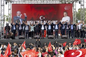 Cumhuriyet Halk Partisi (CHP) Mersin’de ‘Millet İradesine Sahip Çıkıyor Mitingi’ düzenledi. Partisinin Cumhurbaşkanı Adayı Ekrem İmamoğlu’na özgürlük ve erken seçim için mitinglerini sürdüren CHP, Mersin’de tarihi bir mitinge imza attı. Miting meydanı; gencinden yaşlısına, 7’den 70’e her yaştan yurttaşla doldu taştı. Kalabalıktan; ‘Hak, Hukuk, Adalet!’ sesleri yükseldi. Ara ara oluşan olumsuz hava koşullarına rağmen, mitingin coşkusu hiç sönmedi. Mersin Büyükşehir Belediye Başkanı Vahap Seçer ve Meral Seçer de CHP Genel Başkanı Özgür Özel öncülüğünde gerçekleştirilen ’Millet İradesine Sahip Çıkıyor Mitingi’ne katıldı.