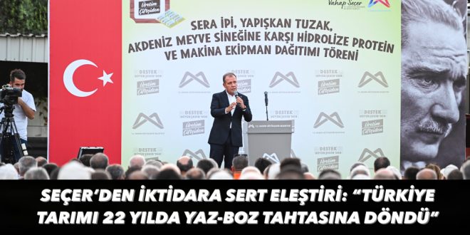 Konuşmasına başlarken farklı siyasi partilerden insanların törene katıldığının altını çizen Başkan Seçer, “İşte demokrasi bu. Herkesin belediyesi Mersin Büyükşehir Belediyesi’nin toplantılarına herkesin katılmasını arzu ederiz. Biz herkesin Belediyesi’yiz ve herkesin Belediye Başkanı’yız” sözlerine yer verdi. Tarımsal dağıtımın yapıldığı Kazanlı ve Adanalıoğlu’nun örtü altı sera bölgesi olduğuna dikkat çeken ve seracılığa yönelik destekler yapacaklarını belirten Seçer, tüm üreticilere desteklerin hayırlı olması dileğinde bulundu.Bu yıl ilk kez hidrolize protein desteği yapacaklarının altını çizen Seçer, “Akdeniz meyve sineği bu bölgenin çok zarar veren, çiftçinin mağduriyetini ortaya çıkaran bir zararlı haline geldi. Bizim bu yapacağımız katkılarla bu sorun çözülmez, onu söyleyeyim. Bütün kurumlar işini yapacak, öyle olursa sonuç alınır, öyle olursa refah devleti, refah ülkesi oluruz. Herkes kendi kafasına göre giderse, ülkede siyasi iktidarlar siyaseti hâkim kılarsa, liyakatin olmadığı insanlar layık olmadığı göreve getirilirse işte akdeniz meyve sineğinin popülasyonu da artar” dedi.