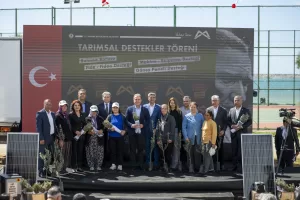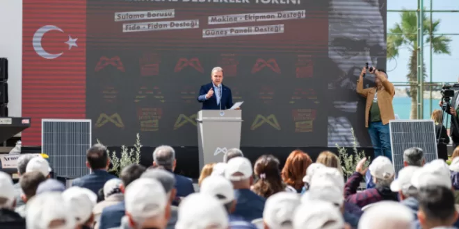 Mersin Büyükşehir Belediyesi tarafından, düzenlenen tören ile Aydıncık’ta 84 üreticiye toplam 2 bin 520 adet zeytin fidanı, 6 üreticiye 5 bin 100 adet lavanta fidesi, 7 yetiştiriciye güneş paneli desteği, 1 sulama kooperatifine 1200 metre boru desteği ile üreticilere 5 adet makine ekipman desteği sağlandı.