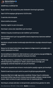 AKP’li Mehmet Metiner, Edirne Cezaevinde Selahattin Demirtaş’ı ziyaret etti. Metiner, Demirtaş’ın mesajını paylaşarak ne konuştuklarını tane tane kamuoyu ile paylaştı. Metiner Demirtaş için “Bu süreçte aklından ve deneyiminden yararlanılması gereken bir aktör” dedi.