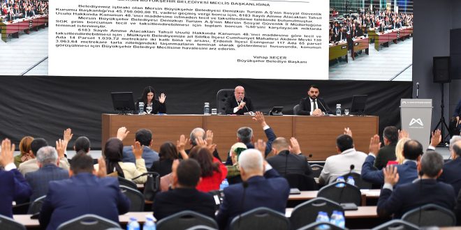 Meclis’te Mersin Büyükşehir Belediyesi iştirakleri Kültür Sanat Bilim Ulaştırma Ticaret ve Sanayi A.Ş, Denizkızı Turizm A.Ş ve MESKİ Personel A.Ş.’nin SGK İl Müdürlüğü’ne prim borcunun tecil ve taksitlendirebilmesi için Mersin Büyükşehir Belediyesi’ne ait bazı taşınmazların teminat gösterilmesi ile ilgili maddeler görüşüldü.