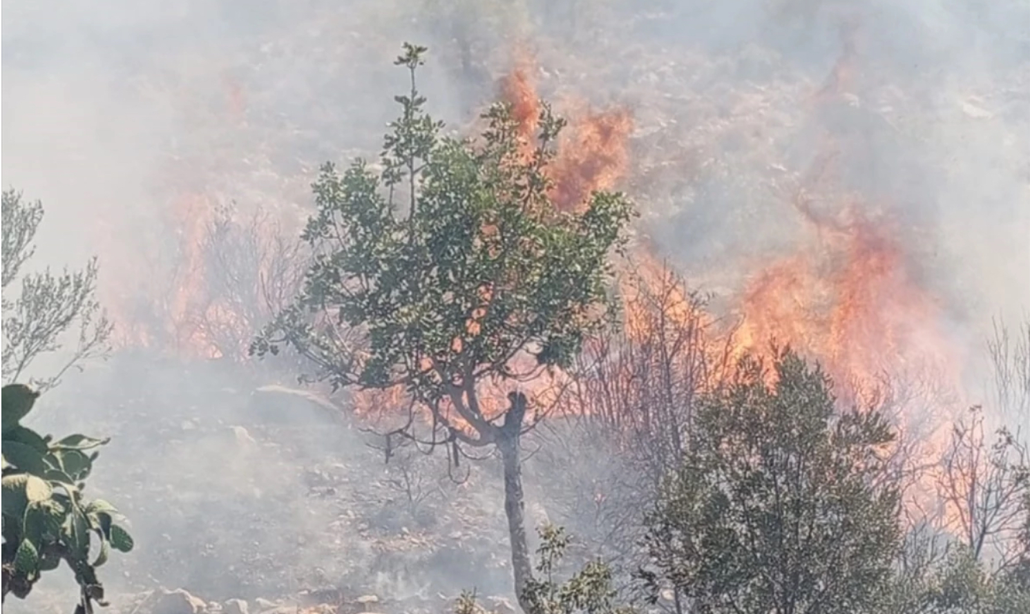 Soğutma çalışması sürdürülen bölgede zeytin ve harnup ağaçları zarar gördü.