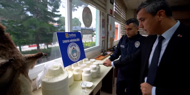 Tarsus Belediyesi gıda denetimlerini sürdürüyor. Zabıta ekiplerince yapılan ilk denetimler kapsamında, ele geçirilen peynirler için basit usul yöntemi olarak sıcak su testine tabi tutuldu. Testte, peynirler kısa bir süre içerisinde çözülerek ürünün kalitesizliği ortaya çıktı. Ürünler, belediyenin laboratuvarında gerekli incelemeler gerçekleştirildikten sonra imha edilecek.