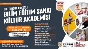 Ayrıca, Tarsus Belediyesi, kültür-sanat ve hobi kurslarının yanı sıra Tarsus Belediyesi Çocuk Korosu ve çocuk ritim grubu için de kayıtları başlattı. Başvuruda bulunmak isteyen vatandaşlar 0324-627-31-81 No’lu numarayı arayarak bilgi, Dr. Turgut Erkutlu Bilim Sanat Eğitim Akademisi’ni ise ziyaret ederek kayıtlarını gerçekleştirebilecek.  Son başvuru tarihi 10 Haziran olup, kursların 24 Hazirantarihinde başlayacağı belirtildi.