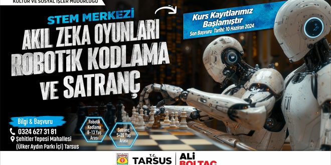 Tarsus Belediyesi Kültür ve Sosyal işleri Müdürlüğü tarafından STEM Merkezi ve Dr. Turgut Erkutlu Bilim Eğitim Sanat ve Kültür Akademisi’nde çocukların, gençlerin yeteneklerini geliştirmek ve çeşitli alanlarda kullanabilecekleri eğitimleri sağlanmak adına çalışmaları sürdürülüyor.