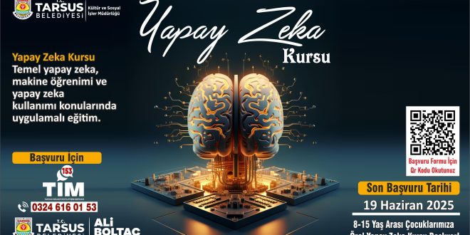 Tarsus Belediyesi Kültür ve Sosyal İşler Müdürlüğü tarafından hayata geçirilen kursta, temel yapay zeka, makine öğrenimi ve yapay zeka uygulamaları gibi konularda uygulamalı eğitimler verilecek. Bu sayede çocuklar hem günümüz teknolojilerini yakından tanıyacak hem de geleceğin mesleklerine bir adım daha yaklaşma fırsatı bulacak. Başvurular 19 Haziran’da son buluyor.