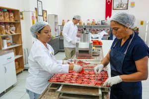 Tesiste, mevsimine göre domates, şeftali, karpuz, kavun, elma, biber ve birçok sebze-meyve kurutularak hijyenik koşullarda paketleniyor. Bu sayede, Tarsus’un bereketli topraklarında yetişen ürünler ekonomik değere dönüşüyor, israfın önüne geçiliyor ve sürdürülebilir tarım anlayışı destekleniyor.