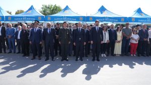 Tarsus Kaymakam’ı Mehmet Ali Akyüz, Tarsus Belediye Başkanı Ali Boltaç ve protokol üyelerinin katılımıyla Atatürk Anıtı’na çelenk sunuldu. Saygı duruşu ve İstiklal Marşı’nın okunmasının ardından kortej yürüyüşü için Cumhuriyet Meydanı’ndan hareket edildi.