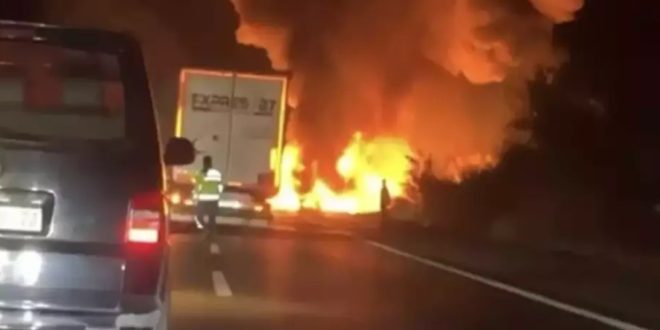 Öte yandan, TIR’ın alev alev yanması ise cep telefonu kamerasıyla kaydedildi. Yangınla ilgili inceleme başlatıldı.