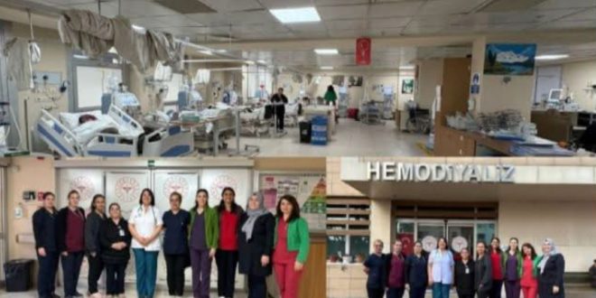 Türk Nefroloji Derneği verilerine göre 6 Şubat depremlerinin ardından bin 24 ezilme sendromlu hastanın kayıtlara geçtiğini belirten Uçar, “Hastaların yüzde 68’in de akut böbrek yetmezliği geliştiği, 635 hastaya 3 bin 16 seans hemodiyaliz işlemi yapıldığı anlaşılmaktadır. Mersin İl Sağlık Müdürlüğü Toros Devlet Hastanemiz bünyesinde hizmet vermekte olan 20 makine kapasiteli Hemodiyaliz Ünitemiz ülkemizin en acı, zor ve sıkıntılı günlerinde deprem bölgesinde hemodiyaliz ünitelerinin zarar görmesinden kaynaklı nakille gelen hastalara kucak açmıştır. Kapasitesini zorlayarak normal günlerde üç seans olan çalışma şeklini beş seansa çıkarmış, gece saat 02.00’lere kadar kesintisiz diyaliz hizmeti vermiştir. Depremzede 40 diyaliz hastası bu süreçte misafirimiz olmuş, yaşadıkları acıları bir nebze azaltabilmek için tüm personel seferber olmuş elimizden gelen desteği azami şekilde verme gayreti göstermiştik. Yine Toros Devlet Hastanesi hemodiyaliz ünitesi Suriye Savaşı sonrası ülkesinden göç etmek zorunda kalan diyalize ihtiyaç duyan böbrek yetmezliği hastalara kucak açmıştır ve hala hasta sayımızın yaklaşık dörtte birini oluşturan sığınmacı göçmenlerin diyaliz tedavisini üstlenmeye devam etmektedir” dedi.