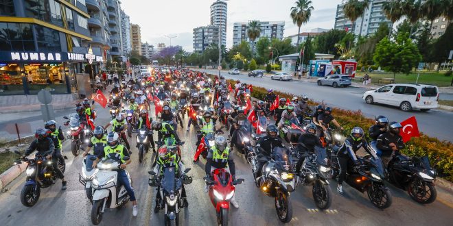 Mersin Yenişehir Belediyesi tarafından organize edilen korteje Türkiye Motosiklet Federasyonu Mersin İl Temsilciliği, Mersin Motosiklet Spor Kulübü, Mersin Bisiklet Derneği, Bisikletin Sultanları ve Mersin Motor Kulübü Derneği üyeleri katıldı. Yenişehir Belediyesi Atatürk Kültür Merkezi önünde buluşan onlarca motosikletli, saat 19.19’da marşlar eşliğinde şehir turuna başladı. Yenişehir Belediyesinin üstü açık otobüsü eşliğinde, korteje katılan motosiklet ve bisiklet tutkunları, araçlarını bayraklar ve balonlarla süsleyerek bayram coşkusunu görsel bir şölene dönüştürdü.