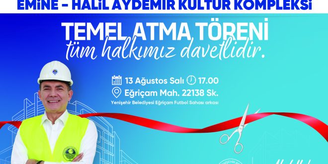 Yenişehir Belediyesi Eğriçam Futbol Sahası’nın kuzeyinde yer alan 22138 numaralı sokakta yer alacak Emine-Halil Aydemir Kültür Kompleksi’nin temel atma törenine tüm vatandaşları davet eden Başkan Abdullah Özyiğit, projenin Yenişehir’e hayırlı olmasını diledi.