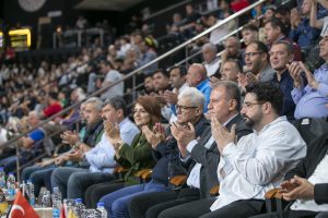 Servet Tazegül Spor Salonu’nda oynanan karşılaşmayı; Mersin Büyükşehir Belediye Başkanı Vahap Seçer, Cumhuriyet Halk Partisi (CHP) Mersin Milletvekilleri Gülcan Kış ile Hasan Ufuk Çakır, Toroslar Belediye Başkanı Abdurrahman Yıldız, Mersin Ticaret Borsası Meclis Başkanı Münir Şen, MSK Yönetim Kurulu Başkanı Berkay Üstündağ, Yeni Mersin İdman Yurdu Kulüp Başkanı Servet Özdemir, Meclis üyeleri, Mersin Büyükşehir Belediyesi bürokratları ve çok sayıda taraftar izledi.