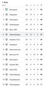 TFF 3. Lig 1. Grup 23. hafta mücadelesinde Silifke Belediyespor, deplasmanda karşılaştığı Kemerkent Bulvarspor’a 2-1 mağlup olurken, 37 puanla 6. sırada yer aldı. Karşılaşmada mağlup olmasına rağmen Silifke Belediyespor playoff maçları oynama şansını sürdürdü.